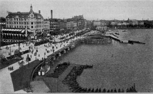 Here you see the very popular promenade Jungfernstieg (virgins way) about hundred years ago. Today, this boulevard ist still one of the most attractive sites in Hamburg. |